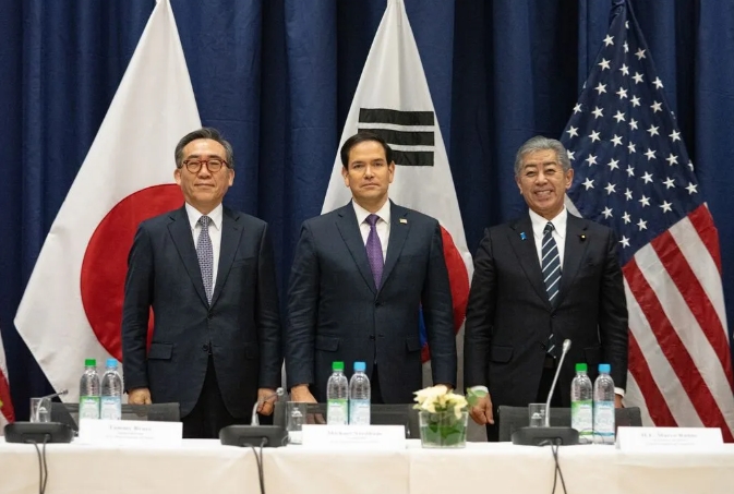 Utrikesminister Marco Rubio och hans japanska och sydkoreanska motsvarigheter träffades i München den 15 februari för att bekräfta det orubbliga trilaterala partnerskapet mellan USA, Japan och Sydkorea. De betonade sitt gemensamma engagemang för säkerhet, säkerhet och välstånd i de tre länderna och den bredare Indo-Stillahavsregionen. De lovade att vidta avgörande åtgärder för att motverka hot, bygga ekonomisk motståndskraft och främja gemensamma intressen.